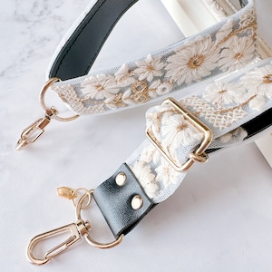 くすみカラーのシフォンに繊細な刺繍を重ね、上品なフェイクレザーと組み合わせました。