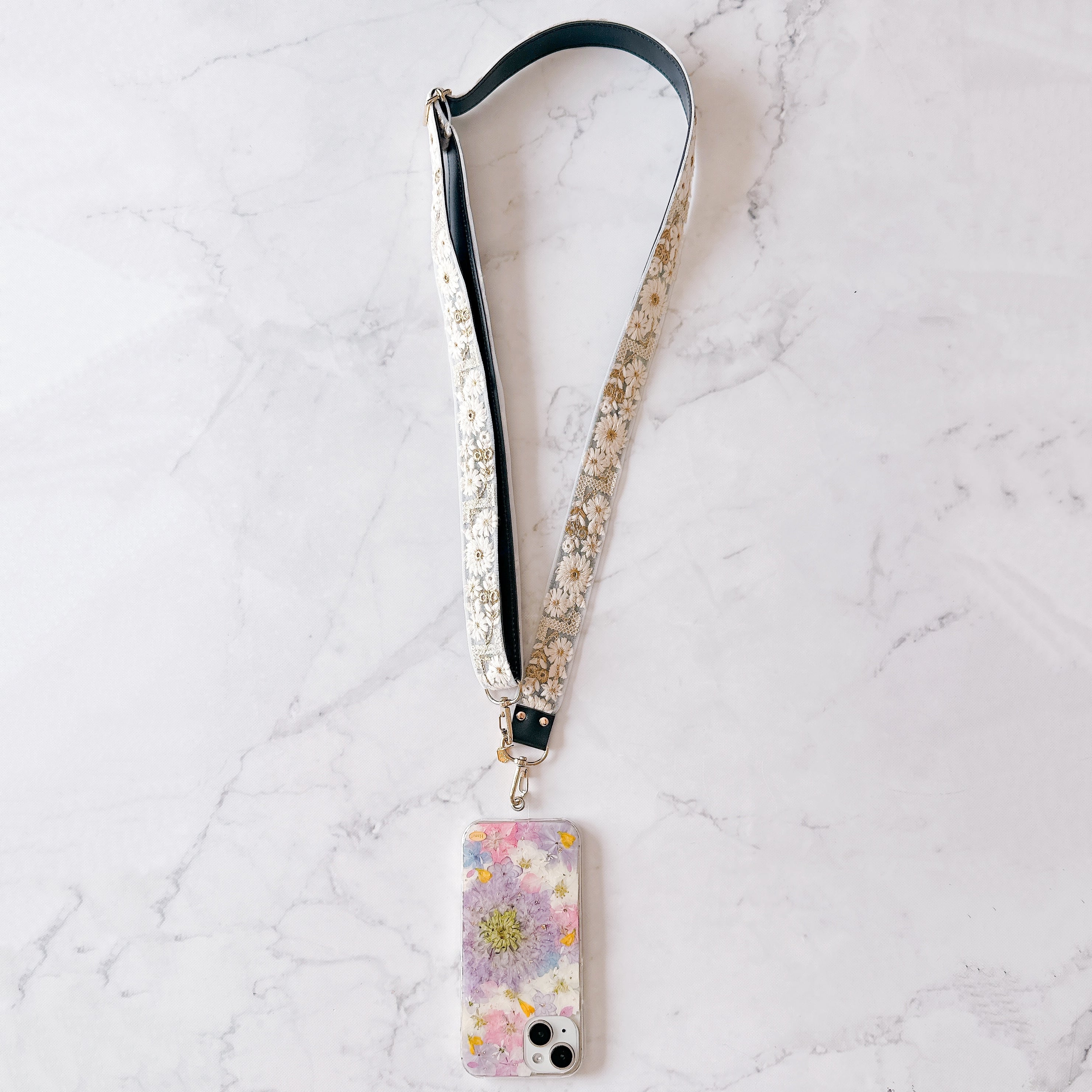 お花のスマホケースとも美しく調和し、コーデ全体をやさしく格上げしてくれます♡